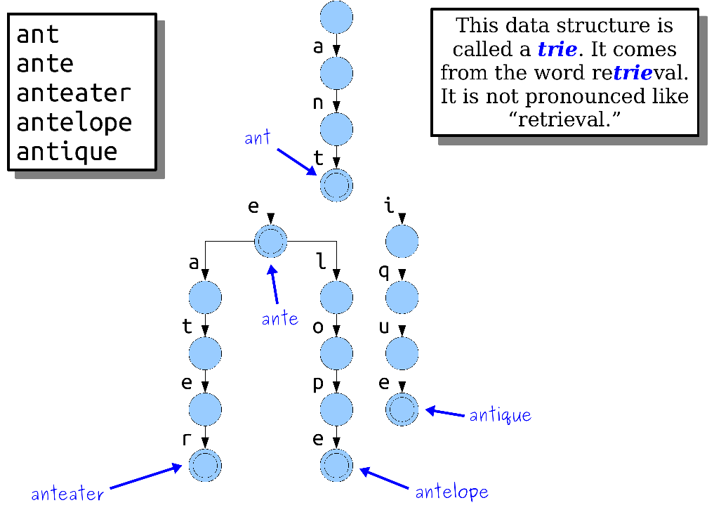 就是遍历所有的字符串集合,一个个匹配。 这个方法中我们花了太多时间用于匹配公共的前缀,有更高效的方法吗?