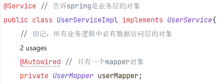 | 业务逻辑层 | service | UserService、UserMapperImpl |