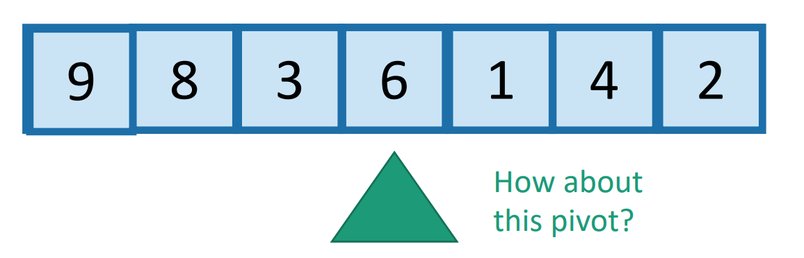 可以随便选择一个点pivot,让小于这个点的移到左边,大于的移到右边(复杂度O(n))